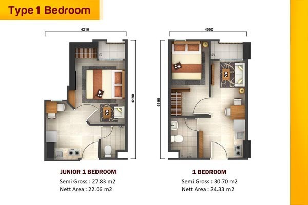- Semi Gross: 30.70 m2 / 27.83 m2 (Junior)