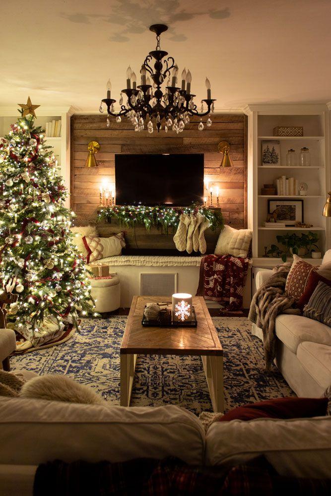 8. Dekorasi Natal di Ruang Tamu dengan Sentuhan Alam & Rustic
