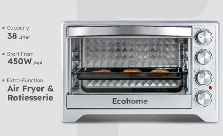 ECOHOME Electric Oven EOP-888 dilengkapi dengan teknologi Diamond Cavity sehingga membuatnya mampu menghantarkan panas secara menyeluruh. Ada juga fitur pengaturan suhu hingga 100-250°C dan timer, jadi Anda dapat memasak sambil menonton tanpa takut masakan menjadi gosong.