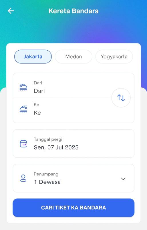 Cara pemesanannya juga cukup sederhana. Anda hanya perlu memilih menu kereta Bandara seperti pada gambar yang tertera di bawah ini.