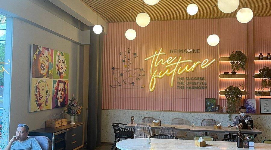 The Leaf menawarkan konsep semi-outdoor dengan dekorasi taman hijau yang cantik, menciptakan suasana romantis penuh ketenangan. Saat malam, cahaya lampu kecil yang berpadu dengan dedaunan menambah kesan hangat dan intim. Menu favorit di sini adalah Grilled Chicken Rosemary Sauce, Seafood Pasta, serta Cheesecake Blueberry sebagai dessert yang lembut. Suasananya cocok untuk pasangan yang ingin dinner romantis bernuansa alami.