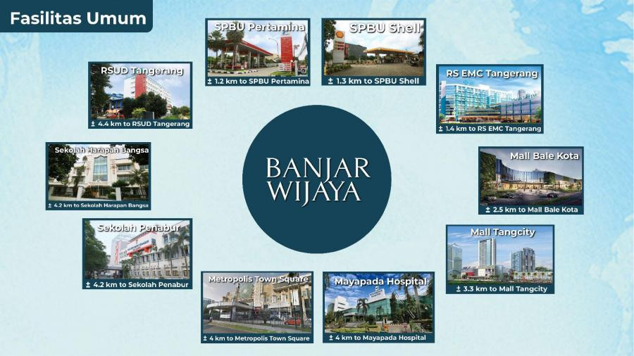 Selain itu, berdekatan juga dengan fasilitas publik seperti RSUD Tangerang, RS Mayapada, Sekolah Harapan Bangsa, dan pusat perbelanjaan Mall Tangcity untuk kebutuhan sehari-hari penghuni bisa dengan mudah terpenuhi.