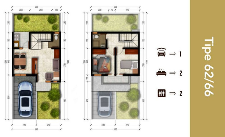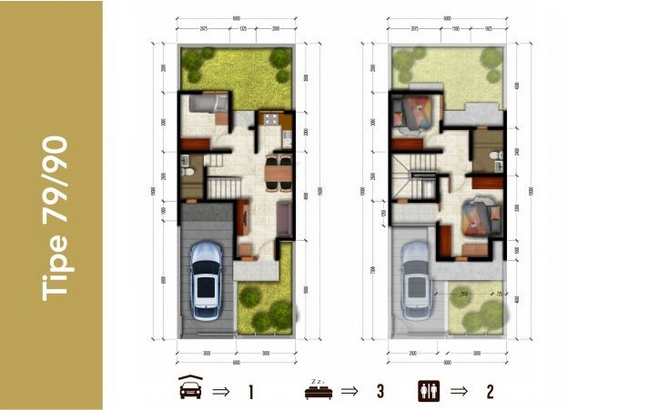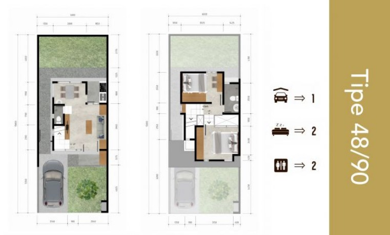 Perumahan ini menyediakan 6 pilihan unit yang dapat Anda pilih, yaitu Tipe 33/66, Tipe 38/77, Tipe 48/90, Tipe 69/102, Tipe 79/90 dan Tipe 93/104. Unit-unit ini merupakan bangunan yang terdiri dari 1 serta 2 lantai.