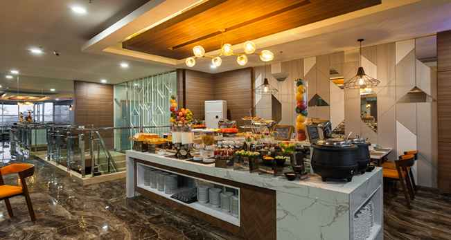 All Day Dining Restaurant dengan kapasitas 150 kursi yang terletak di lantai dasar hotel. Anda dapat memilih untuk indoor atau outdoor dining dengan pilihan menu lokal dan internasional.