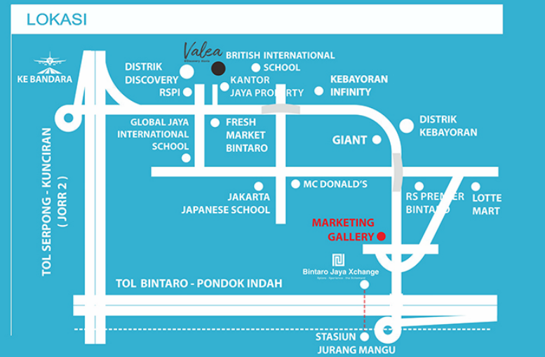 Discovery Valea itu sendiri merupakan bagian dari Discovery Aluvia. Dengan demikian, lokasi cluster juga tentunya strategis dan mudah dijangkau. Bagi Anda pengguna kendaraan pribadi, Anda dapat pergi melalui Tol Bintaro - Pondok Indah dan akses Tol JORR 2 yang lokasinya tidak jauh dari kawasan Discovery Aluvia.