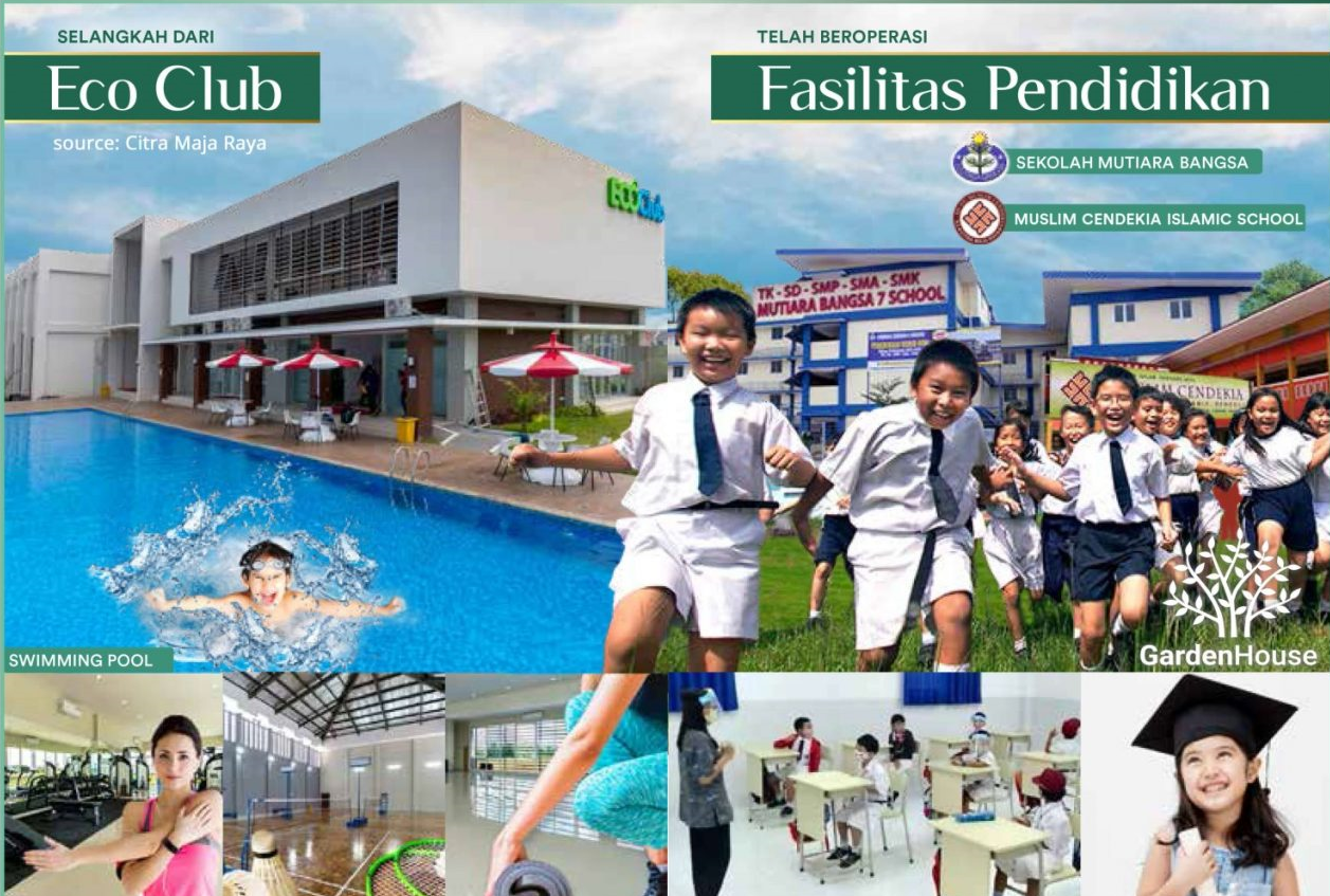 Fasilitas yang disediakan oleh Garden House untuk para penghuninya adalah Eco Club yang terdiri dari kolam renang, fitness center, olahraga indoor seperti bulu tangkis dll, shuttle bus, taman bermain anak, serta security 24 jam yang dapat memberikan keamanan dan juga kenyamanan untuk anda.