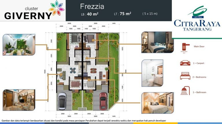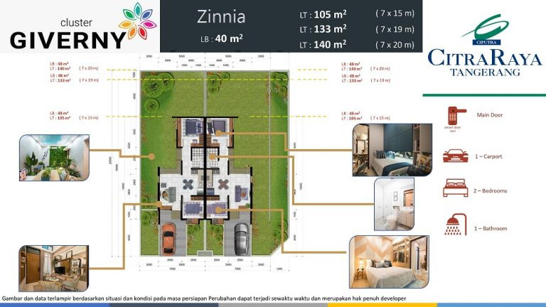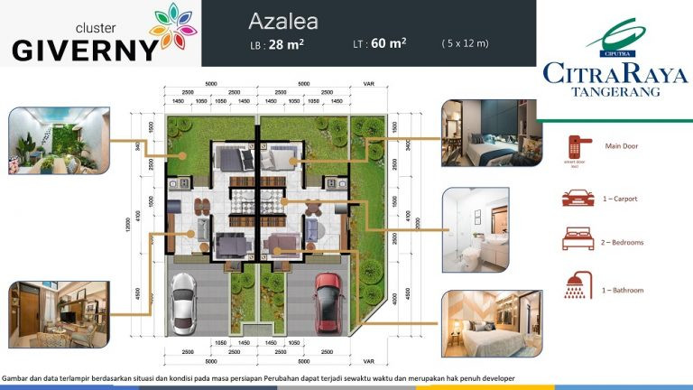 Cluster Giverny menjadi pilihan yang tepat untuk mewujudkan rumah impian bersama keluarga tercinta. Memiliki inner courtyard di rumah memberikan kenyamanan lebih kepada penghuni. Lokasi sangat strategis berdekatan dengan berbagai fasilitas kota lainnya. Harga sangat terjangkau dengan desain modern dan estetik.