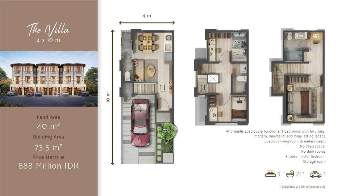 Cluster Osaka merupakan salah satu dari 3 cluster yang menjadi bagian dari Cluster Daisan. Cluster ini menyediakan 2 tipe unit yang dapat Anda pilih, yaitu The Villa dan The Flexible. Keduanya merupakan bangunan 3 lantai dengan desain modern minimalis dan memiliki 1 carport. The Villa akan dijual dengan harga perdana Rp888.000.000, sedangkan The Flexible dengan harga perdana Rp1.198.000.000.