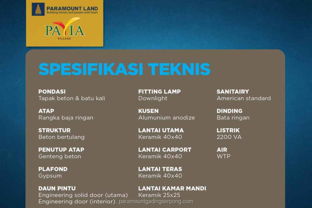 Pavia Village at Amarillo merupakan salah satu cluster perumahan eksklusif di kawasan Paramount Land. Lokasinya berada di Cijantra, Kec. Pagedangan, Tangerang, yang e masuk dalam kawasan Amarillo Village. Cluster perumahan ini hanya berjarak 500 meter dari Boulevard Utama Gading Serpong yang menjadi akses utama menuju wilayah Selatan kota Gading Serpong. Lokasinya juga tidak jauh dari akses jalan tol Jakarta-Merak exit Serpong dan tol JORR exit BSD. Selain strategis, lokasi Pavia Village juga dikelilingi oleh berbagai fasilitas umum, seperti pusat perbelanjaan institusi pendidikan , rumah sakit, dan berbagai fasilitas umum lainnya. Untuk fasilitas, tersedia fasilitas AC dan Water Heater di setiap unit. Pada kawasan cluster, tersedia fasilitas club house, kolam renang, lapangan basket dengan 2 ring, serta jogging track, dan taman bermain tersedia juga Thematic Park seluas 3 hektar bernama Union Park yang dilengkapi dengan danau.
