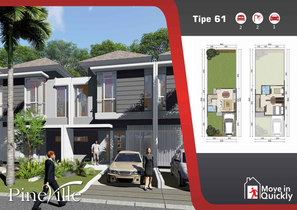 Saat ini, tersedia 1 tipe unit yang dapat Anda pilih, yaitu tipe 61. Unit ini terdiri atas 2 lantai, dilengkapi dengan 2 kamar mandi, 2 kamar tidur, serta halaman belakang. Harga unit dimulai dari Rp1,6 M.