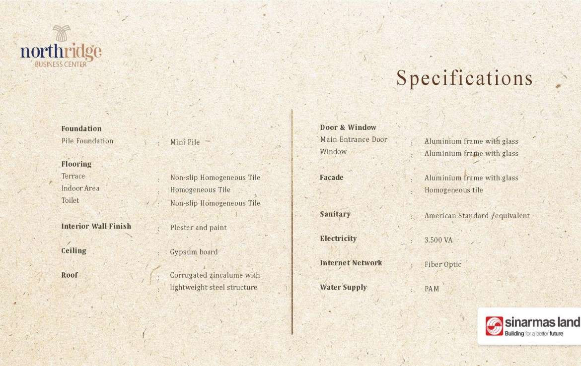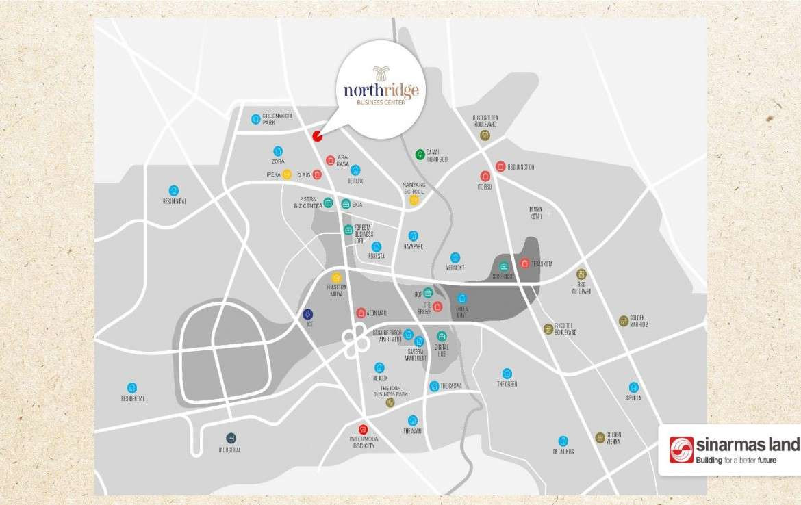 Ruko Northridge BSD City merupakan salah satu pusat bisnis strategis di BSD City. Lokasinya berada di jantung Kota BSD dengan potential market yang tinggi. Dibangun oleh pengembang ternama Sinarmas Land, Ruko Northridge menyediakan berbagai tipe ruko tiga lantai dengan harga promo mulai dari Rp 2,2 M. Northridge BSD City sangat cocok untuk dijadikan tempat bisnis, mulai dari restoran, cafe, klinik kesehatan, laundry, tempat kursus, petshop, hingga dijadikan kantor untuk bisnis Anda.