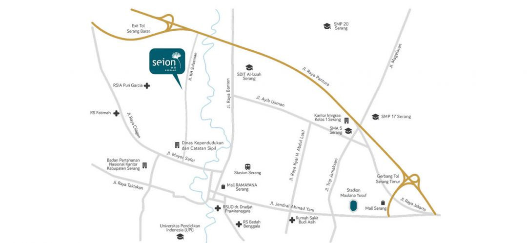 Seion Serang berlokasi strategis di pusat kota Serang. Hanya butuh 5 menit saja untuk menuju jalan protokol Jl. Mayor Safei dan sehingga mudah untuk mobilisasi ke kota Serang. Selain itu, 6 menit saja dari alun-alun Serang, 10 menit dari exit Tol Serang-Barat, serta 15 menit saja dari exit Tol Serang Timur. Kemudahan untuk menuju Seion Serang juga dapat diakses melalui Stasiun Serang yang hanya berjarak 5 menit saja.